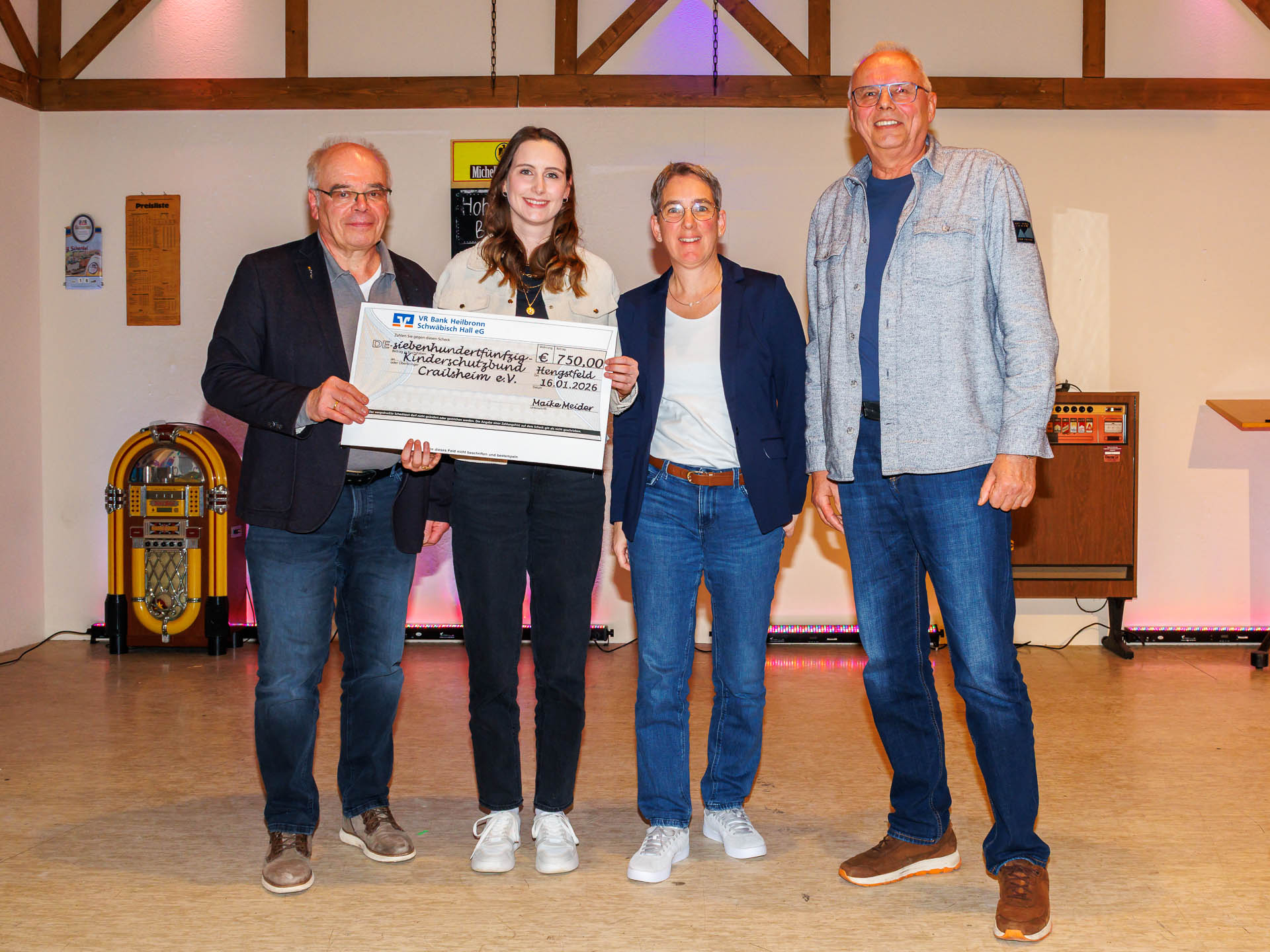 Auch bei der 39. Auflage des Silvesterlaufs wurde der Spendenbetrag sinnvoll eingesetzt und kam dem Kinderschutzbund Crailsheim e.V. zugute. Die offizielle Scheckübergabe an die soziale Einrichtung fand im Rahmen des Bürgerabends am Hengstfelder Viehmarkt am 16. Januar 2026 statt.